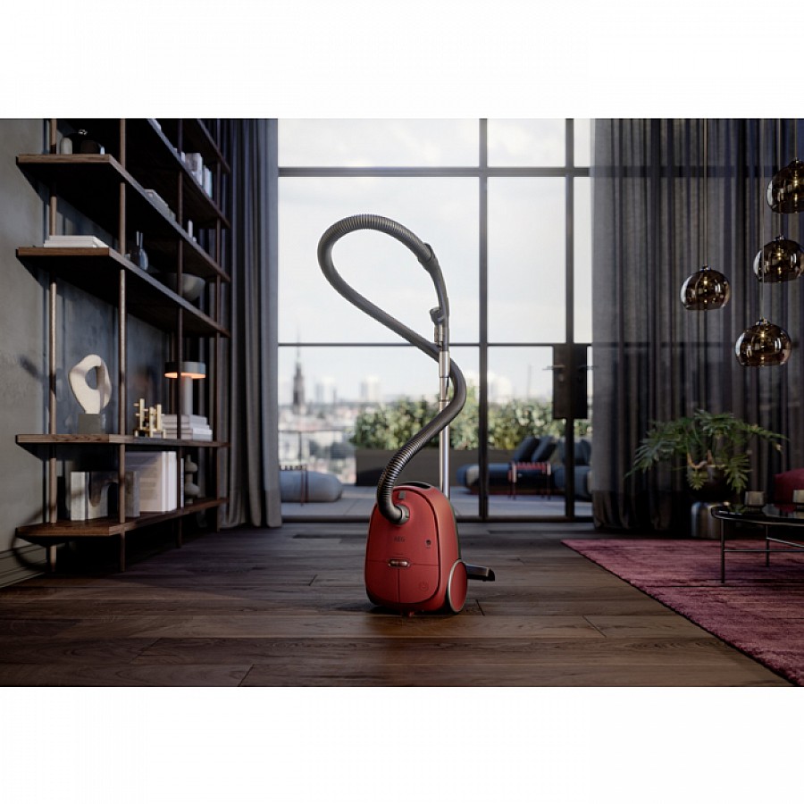 Met de AEG AB61C3CR stofzuiger geniet u van een krachtige en milieuvriendelijke reinigingservaring. Deze stofzuiger combineert duurzaamheid met hoogwaardige prestaties, dankzij het gebruik van 50% gerecycled plastic. De automatische vloerstand past zich naadloos aan op zowel harde vloeren als tapijt, terwijl het geavanceerde filtersysteem met S-Bag Classic Long Performance tot 99,99% van het fijnstof verwijdert. De grote wielen en voetbediening zorgen voor optimaal gebruiksgemak, waardoor u moeiteloos door uw huis beweegt.