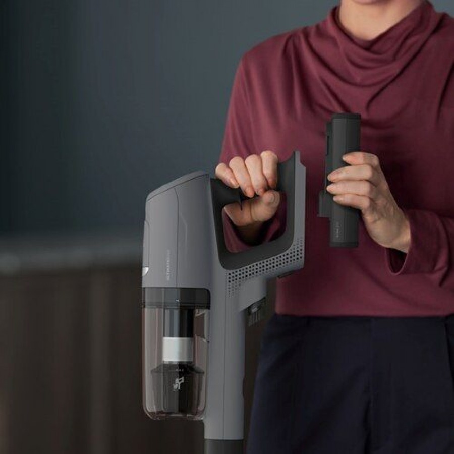 Vijfstaps luchtfiltering filtert tot wel 99,9% van alle micro-stofdeeltjes uit de lucht. Hierdoor heeft de stofzuiger een schonere uitblaaslucht en heb je geen last meer van stof. Stofvrij zonder compromissen. Combineer kracht met gebruiksgemak om je hele huis in een keer brandschoon te maken. Ongelofelijk grondig. Dankzij de aan de muur gemonteerde oplaadstandaard is het gebruik altijd binnen handbereik.