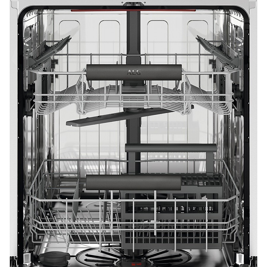 Deze vaatwasser is volledig geintegreerd en heeft de bediening bovenop de deur. Bij de AEG FSB53627P inbouw vaatwasser kan uw eigen keukenpaneel weer op de vaatwasser geplaatst worden.