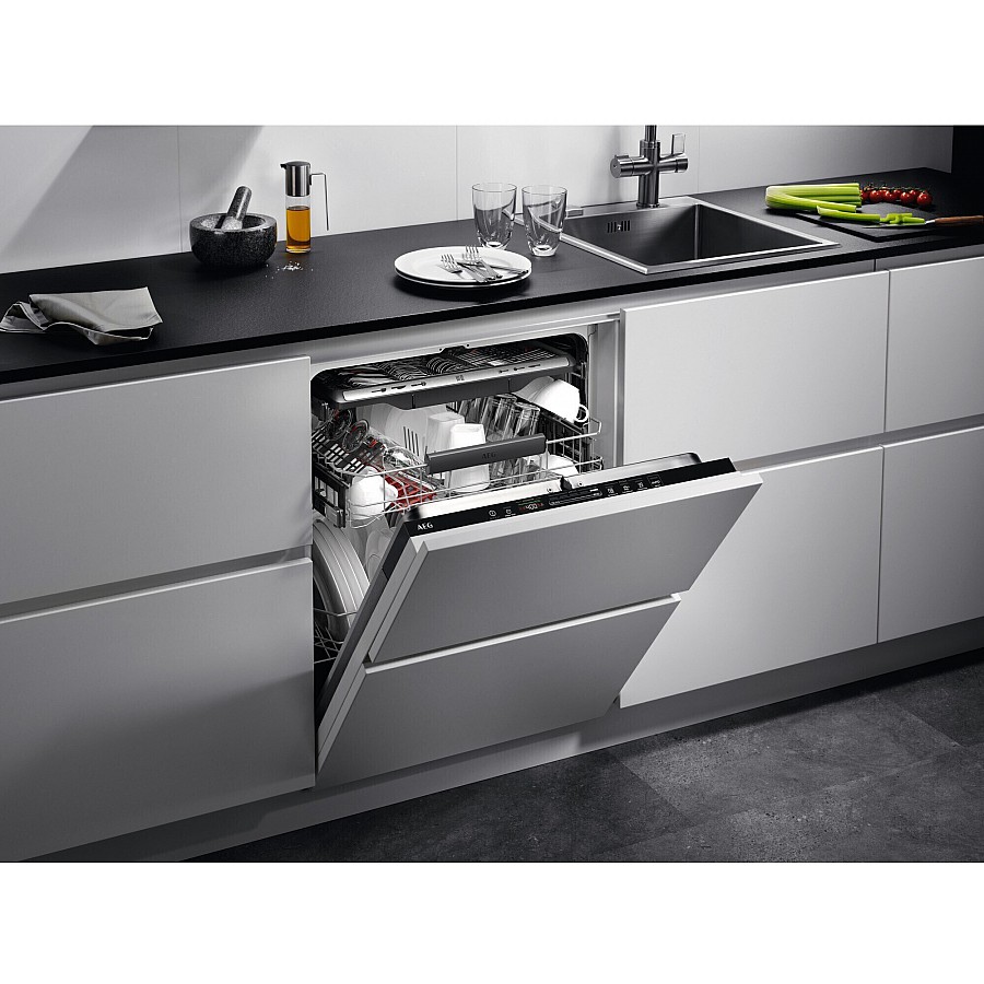 De AEG FSE75768P is een luxe inbouw vaatwasser behorend tot de 7000 serie en uitgevoerd met ProClean techniek, een laag geluidsniveau van 42 dB en een energieklasse B label. Deze afwasmachine beschikt verder over een roestvrijstalen kuip, een besteklade bovenin de kuip en een waterverbruik van 9,9 liter per programma.