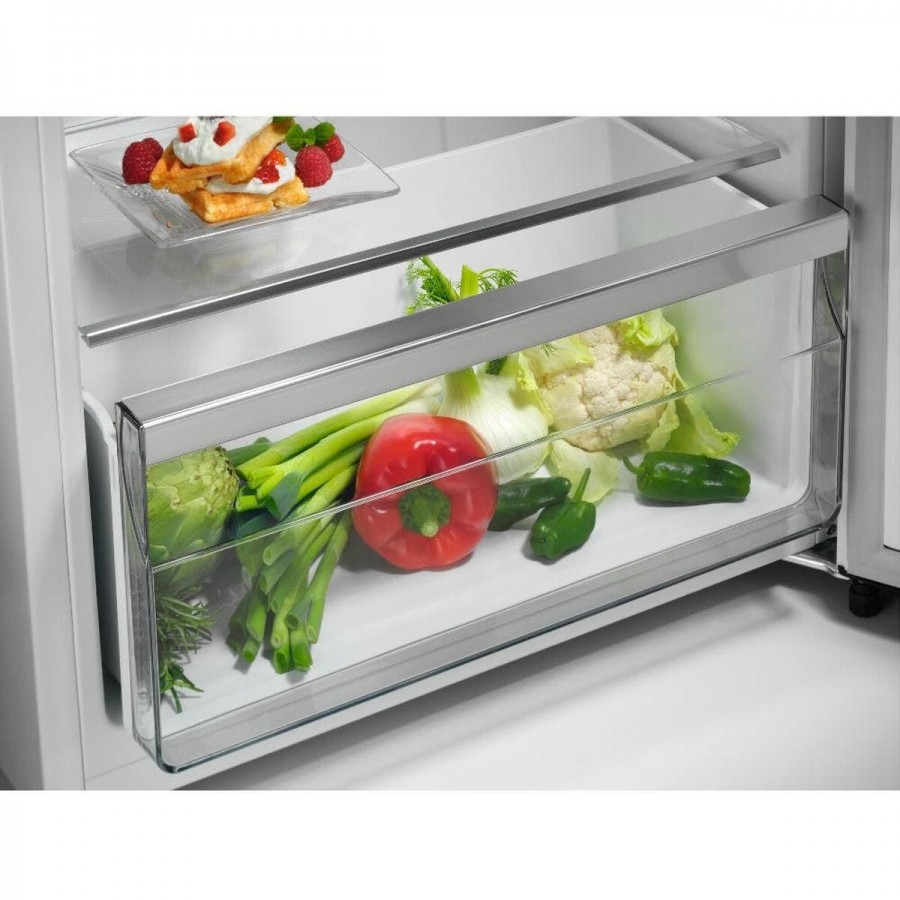 Deze AEG RDB428E1AX vrijstaande koel-vriescombinatie biedt uitzonderlijke prestaties en gemak voor uw huishouden. Dankzij de geavanceerde ColdSense technologie herstelt het apparaat snel de ideale temperatuur na het openen van de deur, wat uw voedingsmiddelen optimaal beschermt tegen temperatuurschokken. De Low Frost-technologie minimaliseert ijsvorming aanzienlijk, waardoor u minder vaak hoeft te ontdooien en het onderhoud eenvoudiger wordt. Met de handige Frostmatic functie vriest u verse producten razendsnel in, zodat smaak en voedingswaarden perfect behouden blijven. Het digitale bedieningspaneel geeft u volledige controle over alle instellingen, terwijl het robuuste RVS design een stijlvolle aanvulling is op uw keuken.