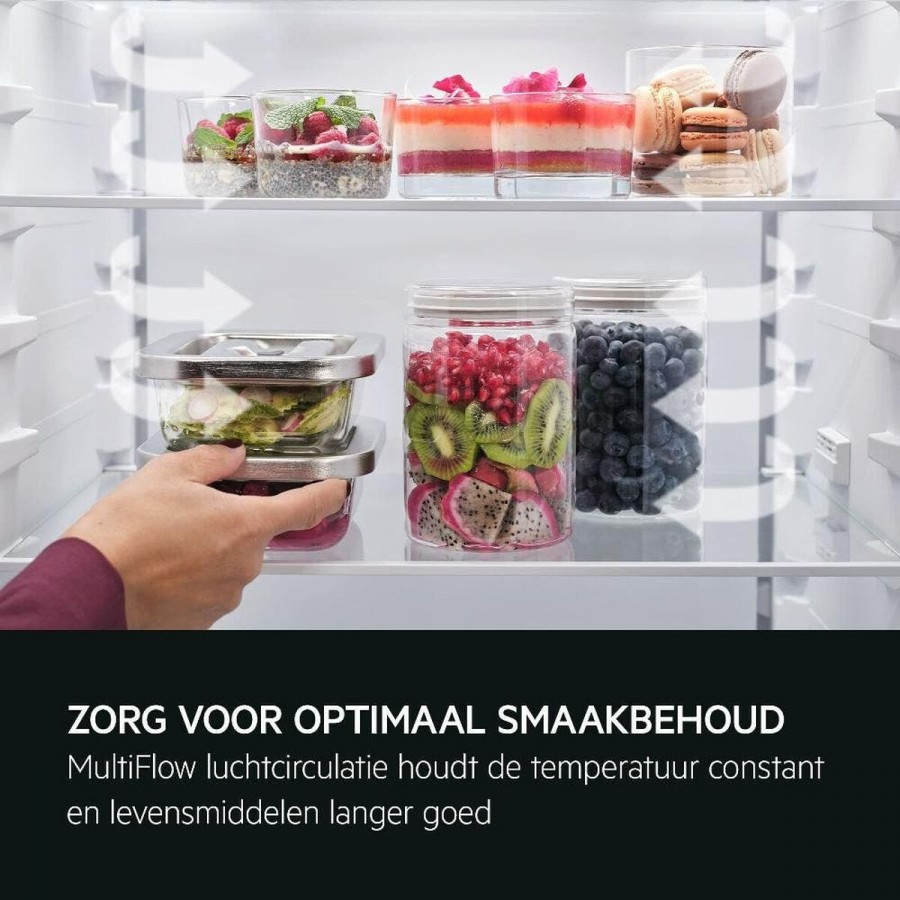 Het Twintech NoFrost systeem gebruikt een dubbel, onafhankelijk koelcircuit voor de koelkast en vriezer, waardoor voedsel sappig blijft en u nooit meer hoeft te ontdooien. Gecombineerd met MultiFlow, dat via meerdere luchtkanalen koude lucht actief circuleert, wordt een uiterst stabiele temperatuur en vochtigheid in elke hoek van de koelkast gegarandeerd voor een optimale kwaliteit van al uw producten.