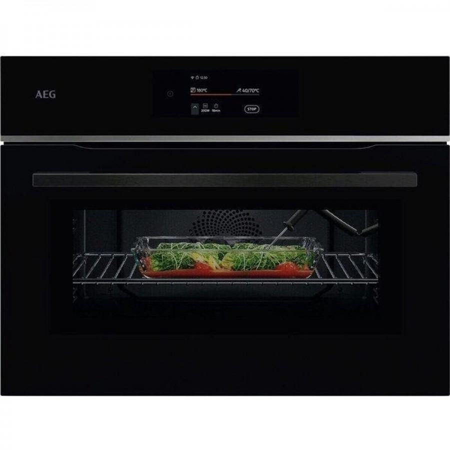 Deze AEG TK8NK72FB inbouw oven met magnetron combineert krachtige magnetronfuncties met een heteluchtoven in een compact 45 cm formaat, biedt intuïtieve bediening via een groot touchscreen en geavanceerde connectiviteit voor moderne kookervaring, en beschikt over handige automatische programma's voor consistente resultaten zonder gedoe.