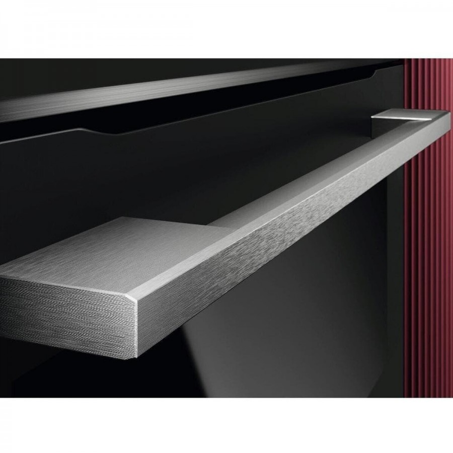 De oven is voorzien van het verfijnde MattBlackLine design, dat bestaat uit een contrastrijk samenspel van matte en glanzende glazen oppervlakken. Dit hoogwaardige materiaal is niet alleen esthetisch zeer aantrekkelijk, maar is ook speciaal behandeld om vingerafdrukken en vlekken te maskeren, waardoor het onderhoud minimaal is en de uitstraling altijd strak blijft.