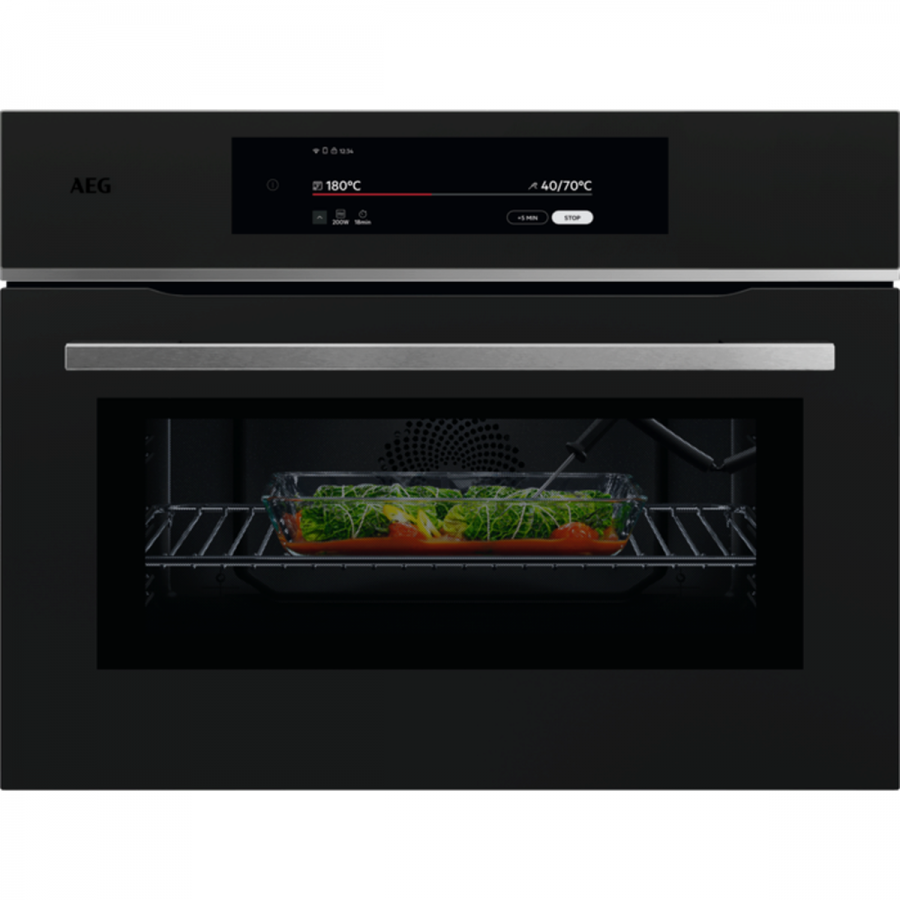 Deze AEG TKK8N821T inbouw oven met magnetron biedt een revolutionaire kookervaring door geavanceerde technologieën te combineren voor superieure resultaten en ongeëvenaard gemak. De 9000 ProAssist CombiQuick functie integreert heteluchtcirculatie met krachtige magnetrontechnologie, waardoor grillen, braden en bakken tot wel vijftig procent sneller verloopt dan in een conventionele oven. Dankzij de innovatieve CookSmart Touch+ interface beschik je over een intuïtieve kookassistent die je naar perfecte gerechten leidt en tegelijkertijd helpt om energie te besparen. Automatische programma's en de handige voedselsensor zorgen voor een uiterst nauwkeurige bereiding, zodat elk gerecht precies naar wens wordt. Het strakke MattBlackLine design voegt een premium uitstraling aan je keuken toe en is praktisch bestand tegen vingerafdrukken.