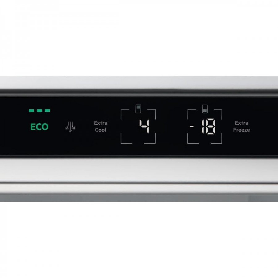 AEG zet zich in voor circulariteit door voor de binnenbekleding van deze koel-vriescombinatie plastic van afgedankte koelkasten een nieuw leven te geven. Dit resulteert in een interieur dat voor 70% uit gerecycled materiaal bestaat, wat bijdraagt aan afvalreductie zonder in te leveren op kwaliteit of esthetiek. De robuuste roestvrijstalen achterwand voegt hier een extra dimensie van elegantie en duurzaamheid aan toe.