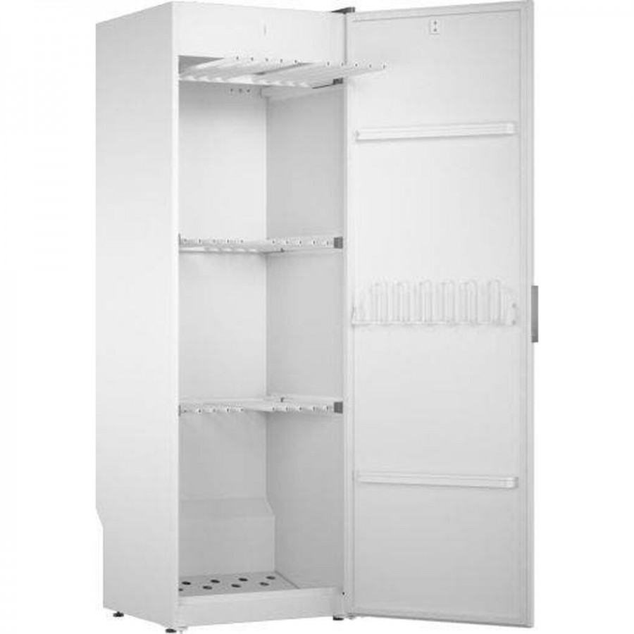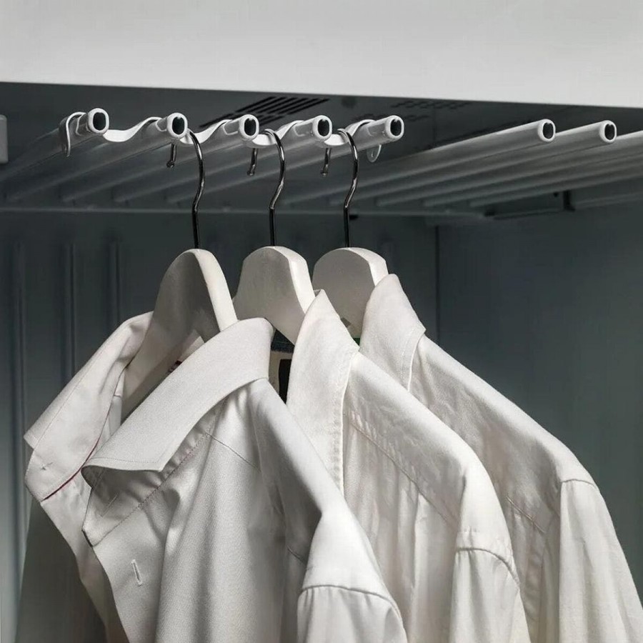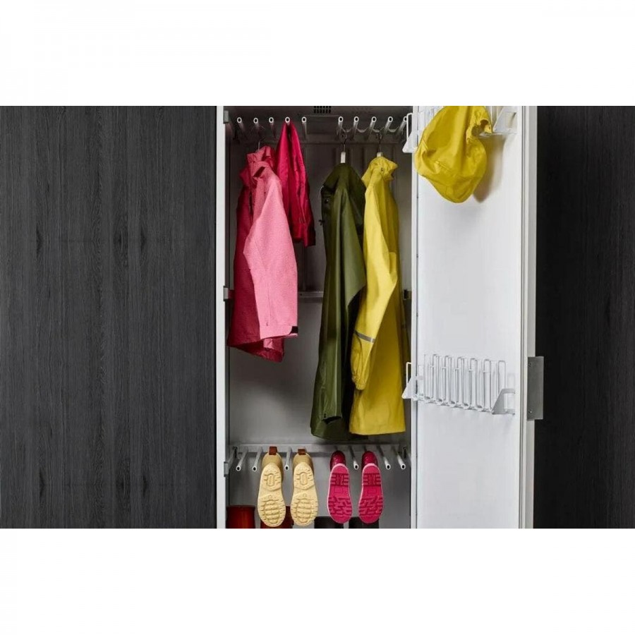 Met 16 meter ophangruimte biedt dit model de capaciteit om de complete was van een gezin op te hangen. Het geïntegreerde schoenenrek zorgt voor een geventileerde droging van schoenen, wat essentieel is om vocht te laten ontsnappen en het breken van naden of het verlies van pasvorm te voorkomen, zodat uw schoenen langer meegaan.