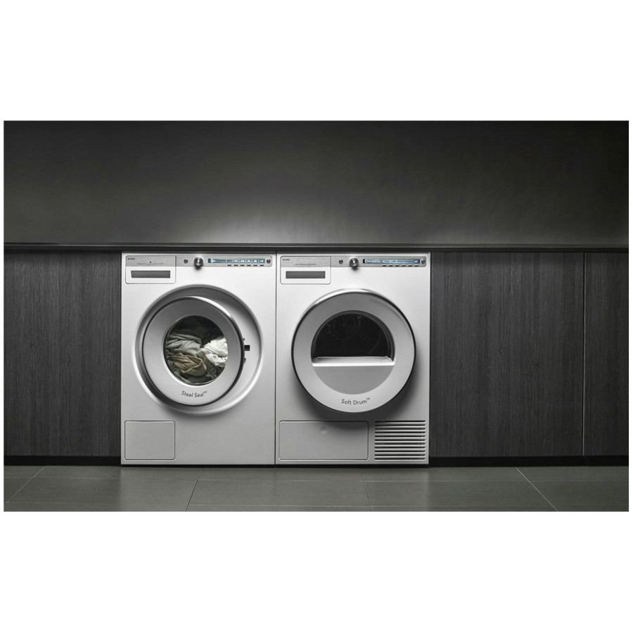 De T408HD.W warmtepompdroger van Asko heeft een vulgewicht van 8 kg. Een warmtepompdroger is het meest energiezuinige type wasdroger en beter voor je kleding dan een traditionele droger. Deze droger heeft energieklasse A+++.