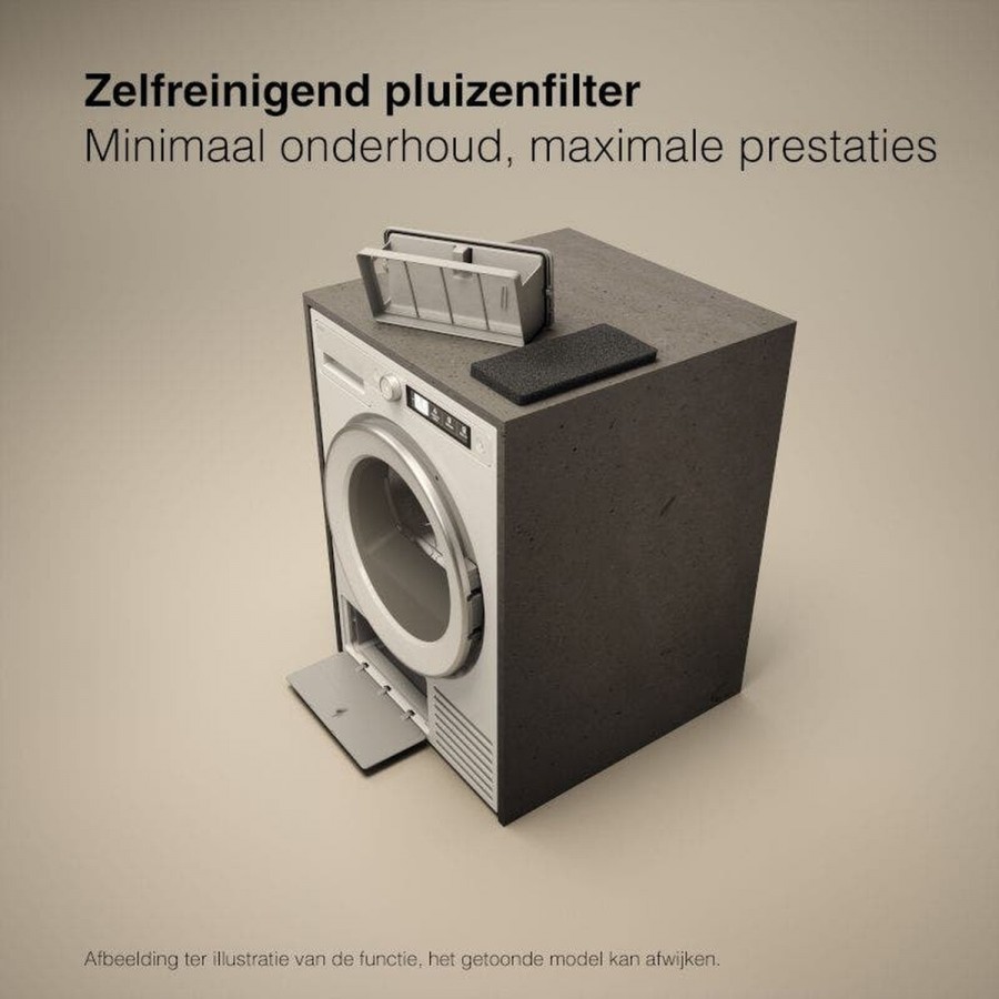 Dankzij de geavanceerde warmtepomptechnologie verbruikt deze droger aanzienlijk minder elektriciteit in vergelijking met conventionele modellen. De gesloten koelcircuit hergebruikt warmte, waardoor het energieverbruik daalt en de droger op een indrukwekkend laag geluidsniveau kan functioneren voor maximale wooncomfort.