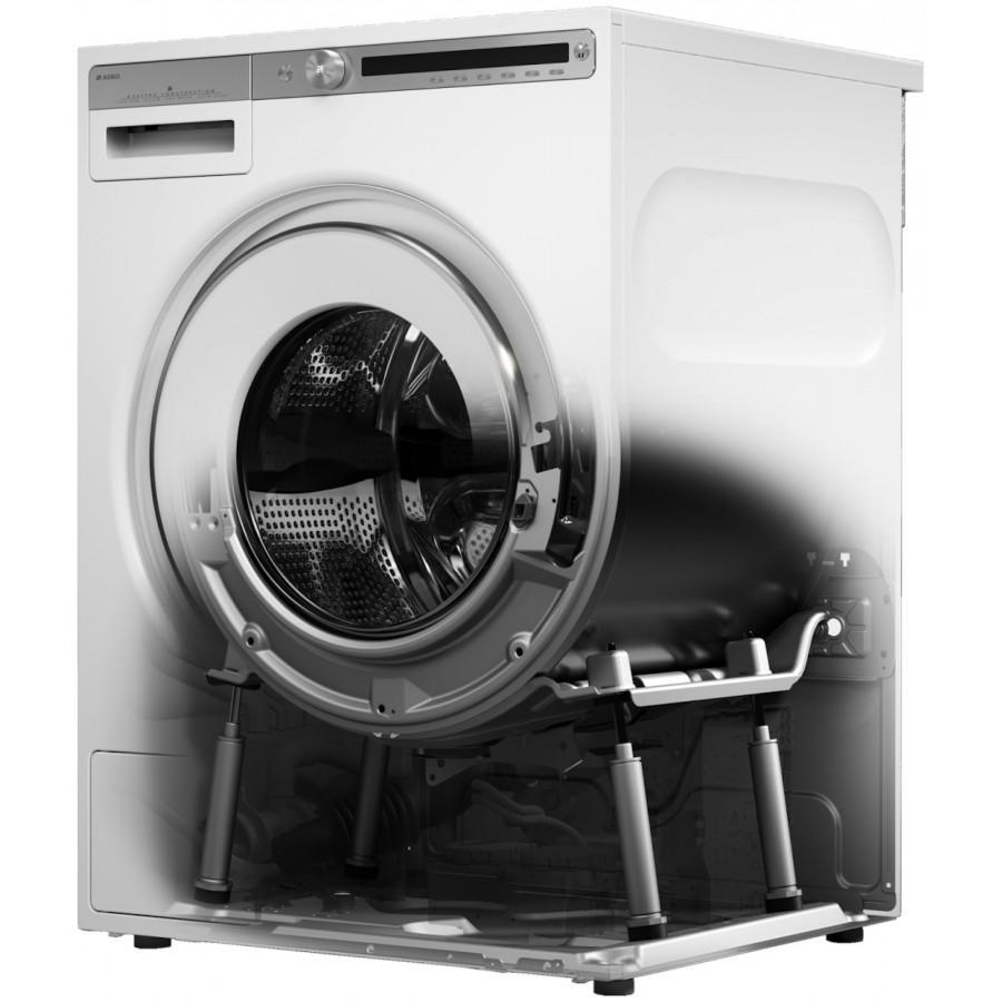 Quattro Construction technologie van Asko zorgt ervoor dat trillingen worden opgevangen door vier schokdempers. Die geven vervolgens de trillingen door aan de bodemplaat van de machine waardoor trillingen sterk worden gereduceerd.