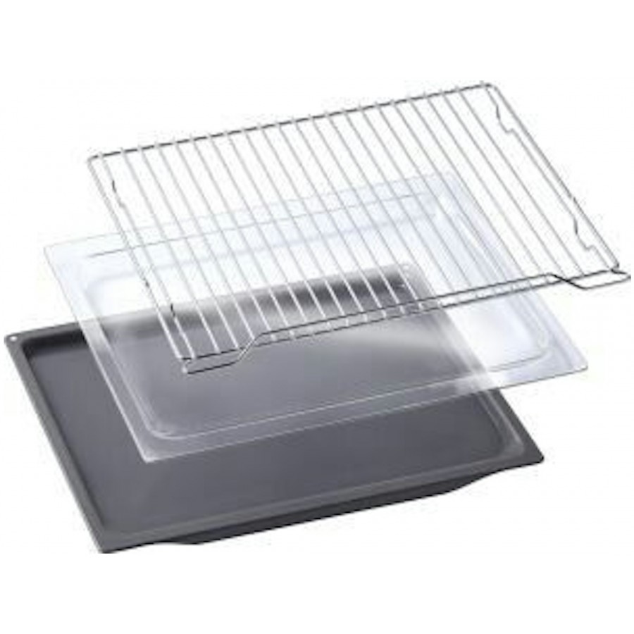 | Meegeleverde toebehoren | 1 grillrooster, 1 ondiepe geëmailleerde bakplaat, 1 glazen bakplaat |