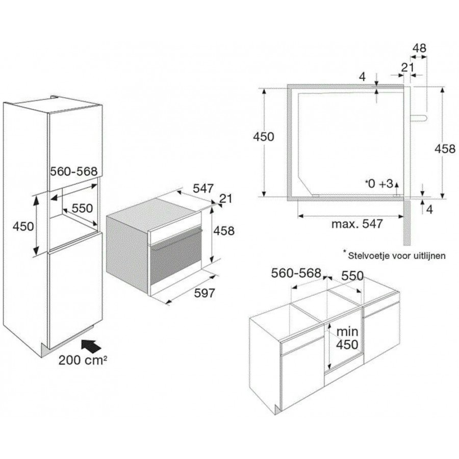 | Extra functies | Eco-hetelucht, Grote grill, Kleine grill, Grill + ventilator, Onderwarmte + ventilator, Onderwarmte, Onderwarmte + hetelucht, Bovenwarmte, Pro roast, Bordenwarm functie, Quick-start, 127 automatische programma’s |