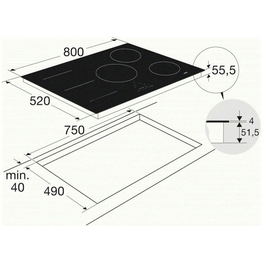 | Afmetingen 5e kookzone | 145 mm |