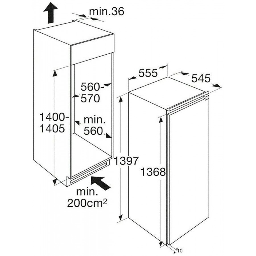 | Minimale nisdiepte | 560 mm |