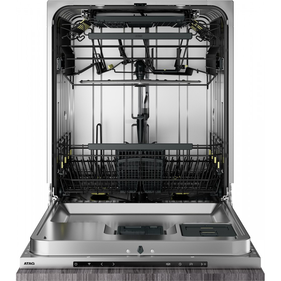 De Atag VA7214SLR is een inbouw vaatwasser uitgevoerd met een rvs kuipbodem, een extra besteklade bovenin in de kuip en een zeer laag geluidsniveau van 39 dB. Interessant is het zuinige energieklasse B label en het waterverbruik van 9,2 liter per programma.
