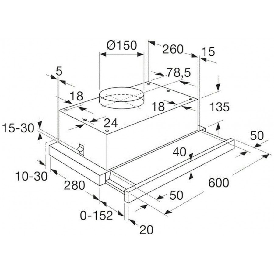 | Meegeleverde toebehoren | Frontpaneel, 2 vetfilters, afvoer flens verloopstuk, terugslagklep, installatieset, aftekenmal |