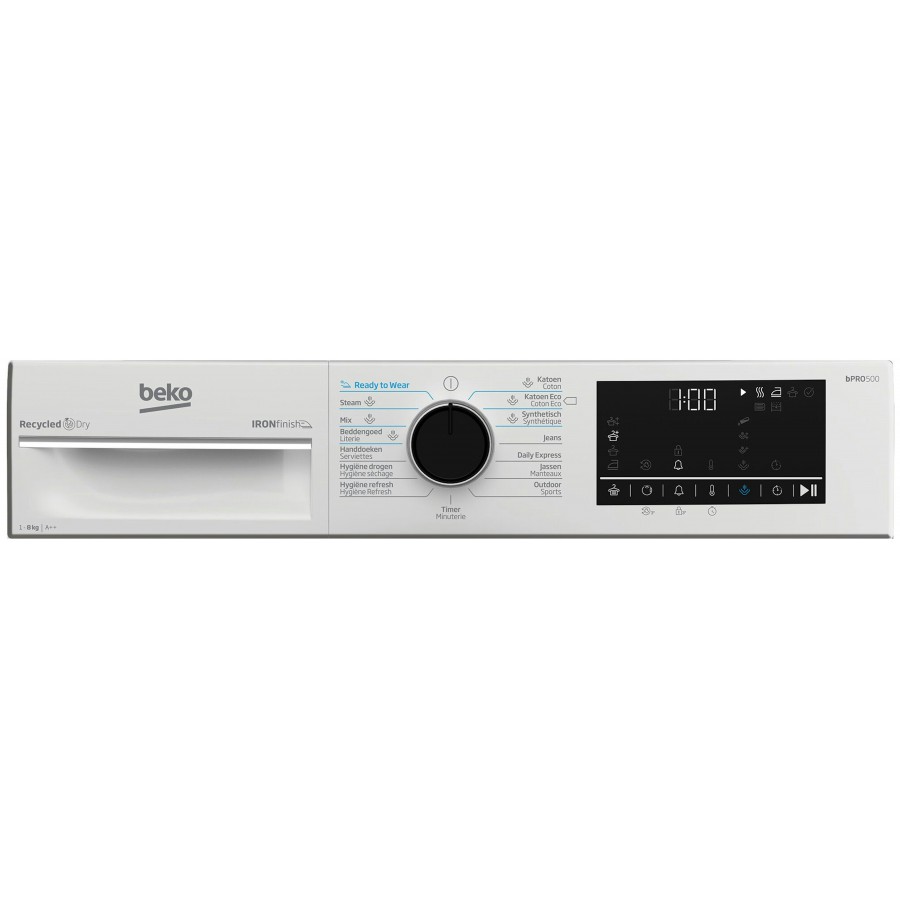 De Beko B5T682339W is een veelzijdige en energiezuinige warmtepompdroger met een vulcapaciteit van 8 kg. Dankzij het A++ energielabel verbruikt deze droger aanzienlijk minder energie, wat goed is voor zowel je portemonnee als het milieu. De droger is uitgerust met 15 verschillende programma's, waaronder speciale opties voor jeans, beddengoed, en sportkleding. Bovendien zorgt het **Ready to Wear**-programma met stoom voor kreukvrije kleding die direct gedragen kan worden, ideaal voor wie tijd wil besparen op strijken.