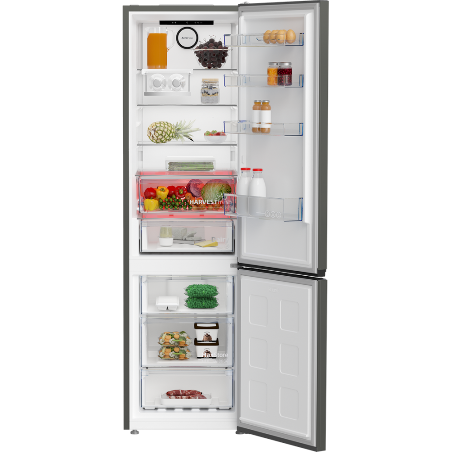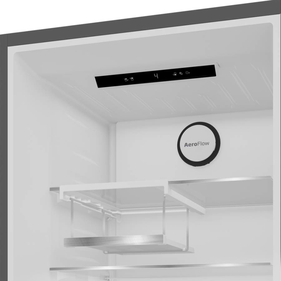 De Beko B7RCNA408HG SELECTIVE koel-vriescombinatie biedt met een royale inhoud van 355 liter – waarvan 249 liter koelen en 106 liter vriezen – meer dan voldoende ruimte voor al jouw etenswaren. Deze vrijstaande combinatie in stijlvolle manhattan grey is uitgerust met geavanceerde technologieën zoals de ProSmart™-invertercompressor, HarvestFresh, MultiZone en CoolRoom®, en past dankzij zijn hoogte van 203,5 cm perfect in de moderne keuken.
