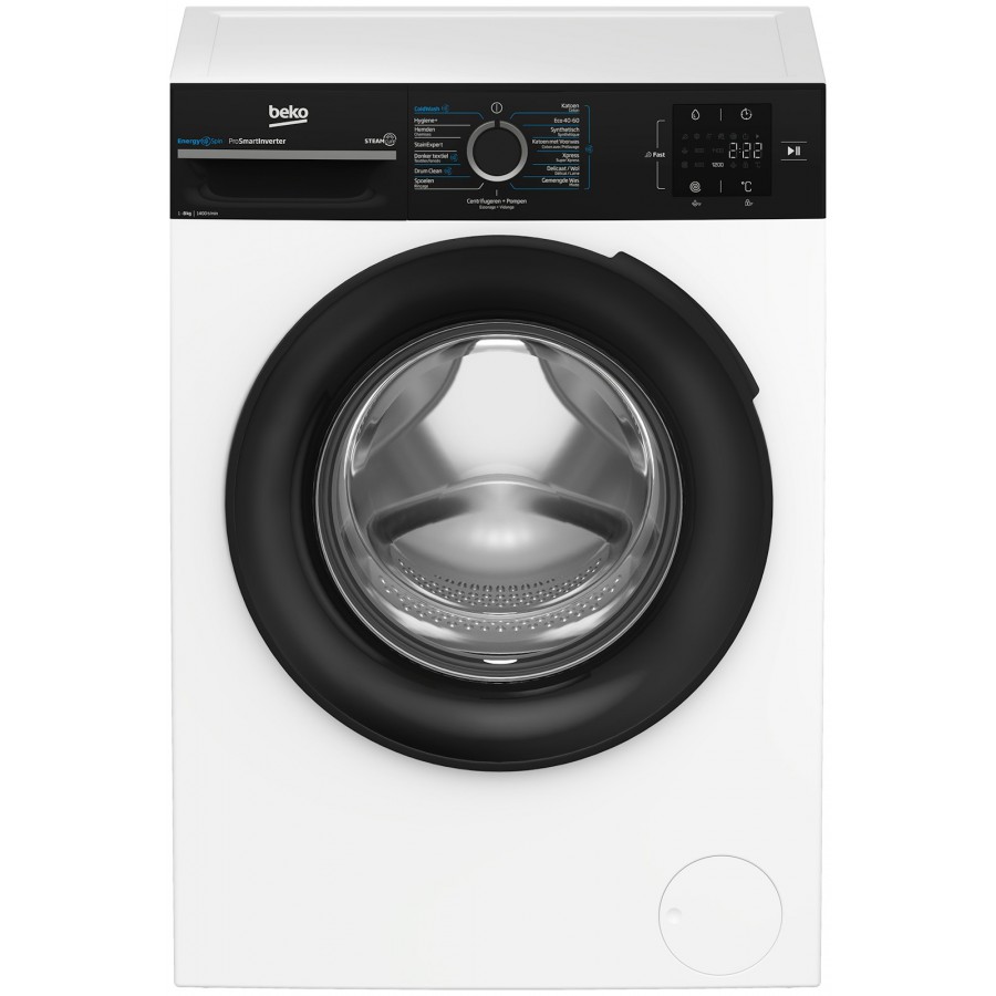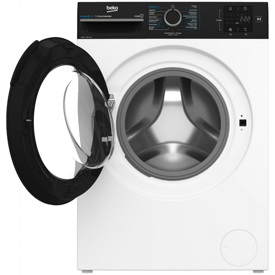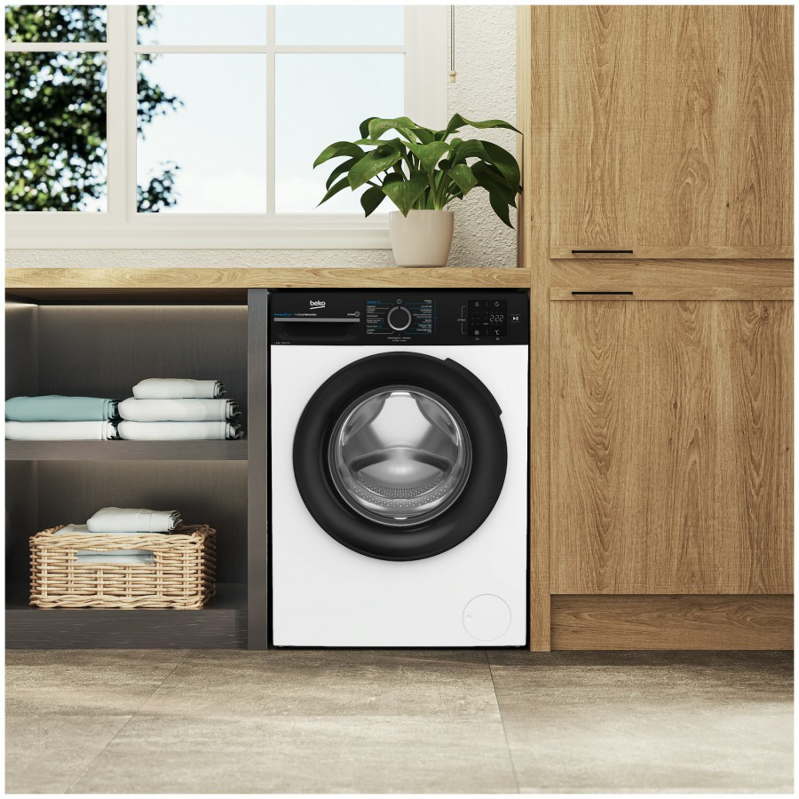 De Beko BM3WFT3841B biedt dezelfde wascapaciteit in een compacter formaat dankzij Volumaxx®. Dit betekent dat het apparaat 10% minder diep is dan gangbare wasmachines, zonder in te leveren op capaciteit. Dit is perfect voor kleinere ruimtes of als je gewoon wat extra ruimte wilt besparen in je wasruimte. Minder is meer met deze efficiënte en ruimtebesparende wasmachine.