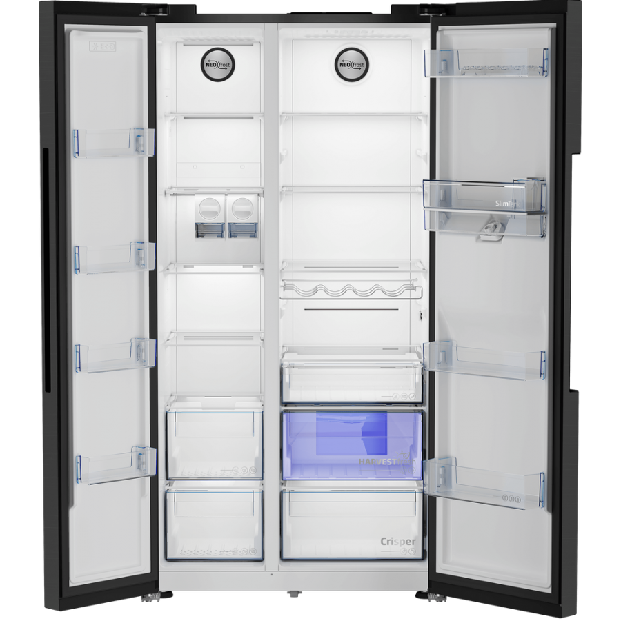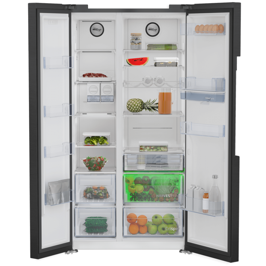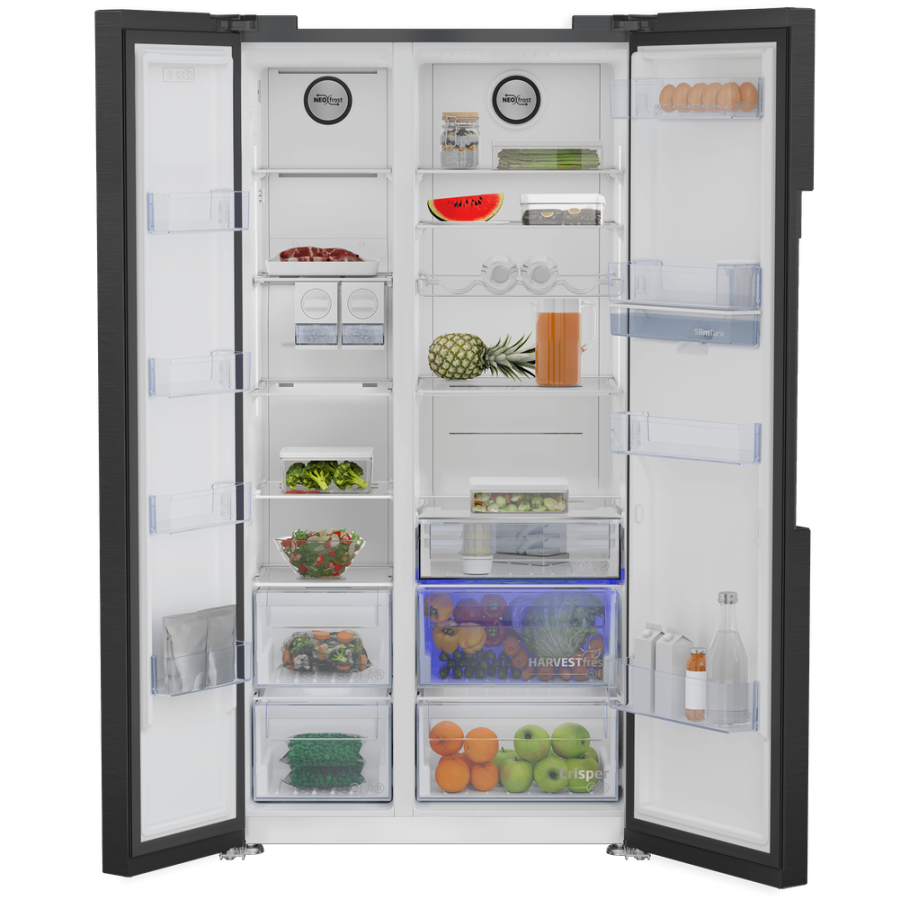 De Beko GN163241XBRN SELECTIVE is een moderne side-by-side koelkast die met innovatieve technologieën zoals HarvestFresh™ en NeoFrost™ jouw levensmiddelen langer vers houdt. Deze vrijstaande Amerikaanse koelkast, uitgevoerd in stijlvol donker inox, biedt met een ruime capaciteit van 576 liter en slimme koeltechnieken alle mogelijkheden voor optimaal bewaren.
