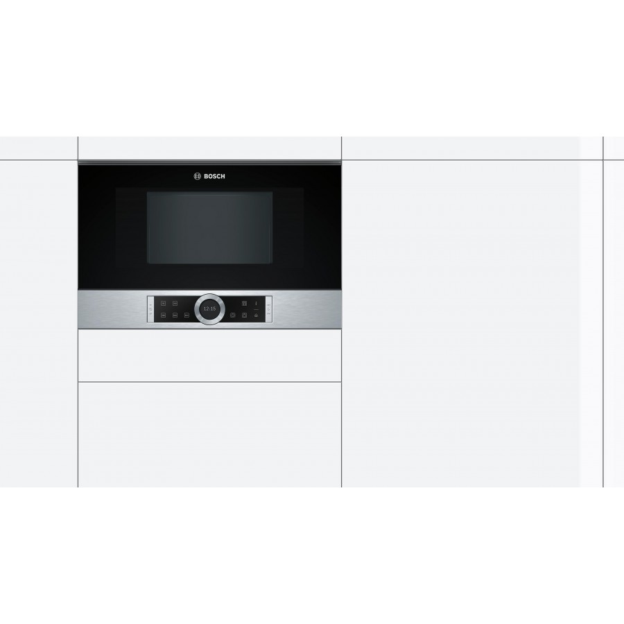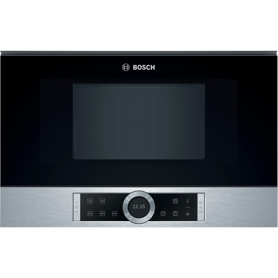 Deze Bosch BFR634GS1 is een fraaie inbouw magnetron uitgevoerd in RVS. Dit inbouw model beschikt over een maximaal magnetronvermogen van 900 Watt, een inhoud van 21 liter en is probleemloos te openen door middel van een toets.