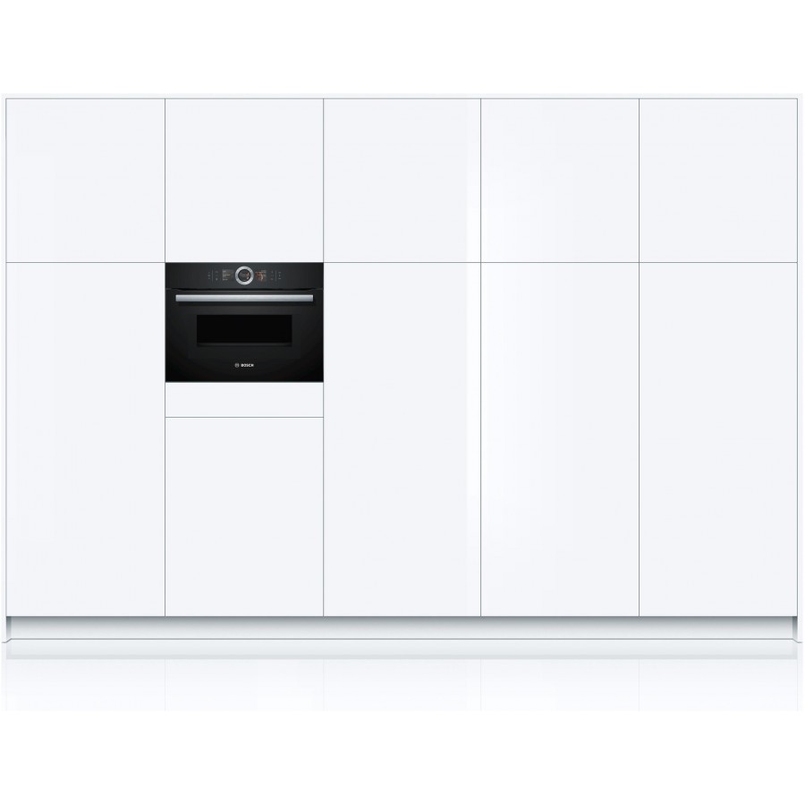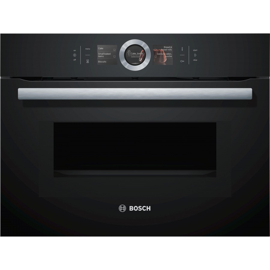 Deze Bosch CMG676BB1 is een inbouw oven met magnetron uitgevoerd in de kleur zwart. Dit inbouw model beschikt over een maximaal magnetronvermogen van 1000 Watt, een inhoud van 45 liter en is eenvoudig te openen door middel van een greep.