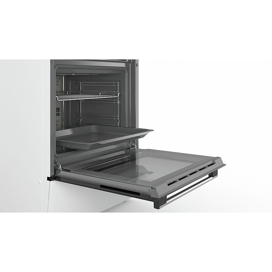 De Bosch HLR390020 is een vrijstaande elektro-fornuis en hiermee zet u in een handomdraai de lekkerste gerechten op tafel. Het kookgedeelte is voorzien van een inductiekookplaat met vier kookzones. Alle kookzones zijn voorzien van een powerboost-functie waarbij de kookzone snel wordt voorzien van een intense warmte. Hierdoor kunt u uw gerechten sneller opwarmen. Daarnaast is ook elke kookzone voorzien van een timer met uitschakelfunctie.