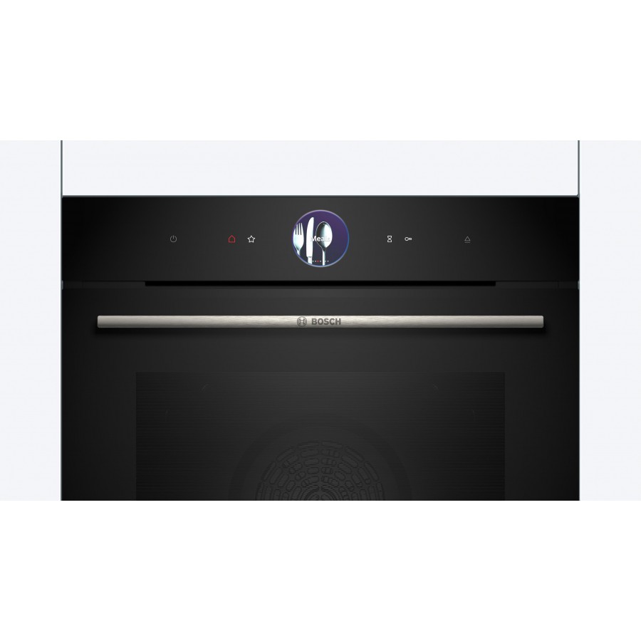 De bakoven met stoom met digitale bedieningsring en TFT-touchdisplay. Assist-functie voor automatisch perfect gebakken maaltijden, bakken met stoom of met toegevoegde stoom. Home Connect voor bediening via de App.