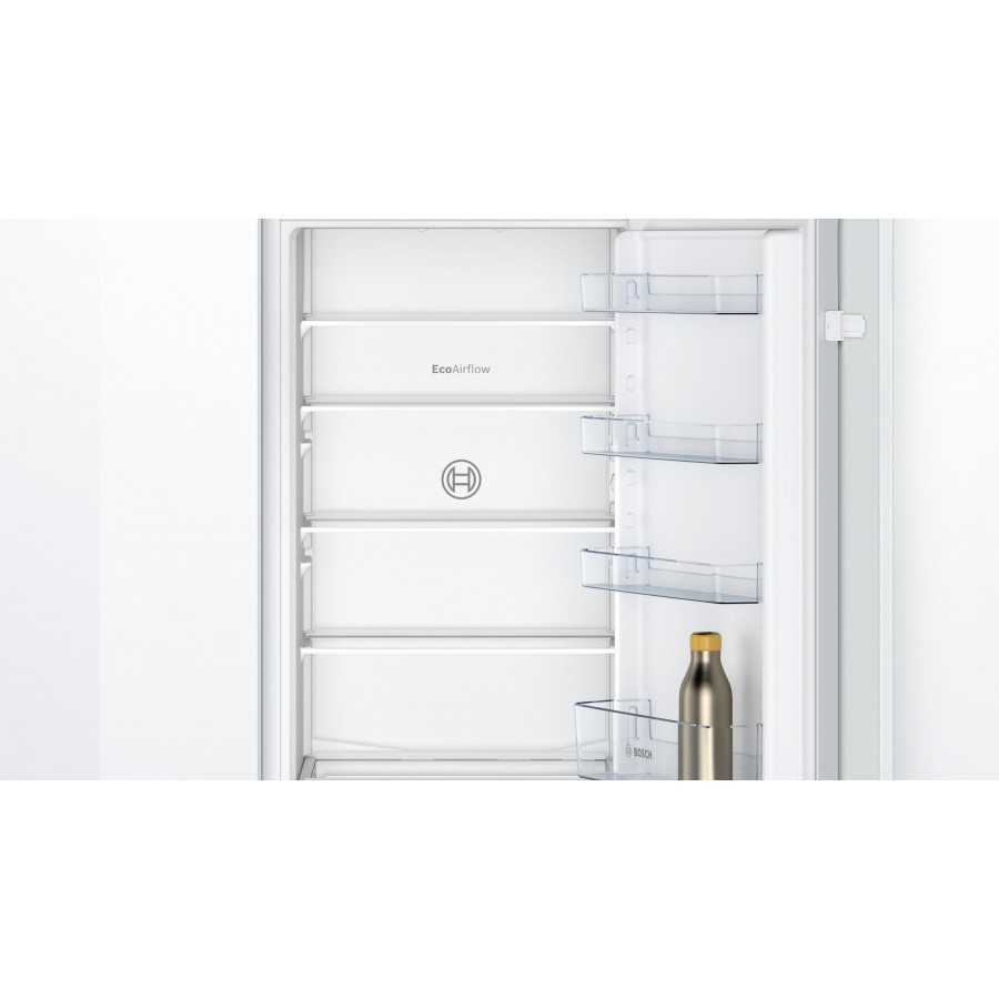 Deze Bosch KIV87NSE0 inbouw koel-vriescombinatie heeft een totale netto inhoud van 270 ltr. De koelkast heeft een zuinig energielabel E en een geluidsniveau van 35 dB. Energiezuinige LED verlichting verlicht de binnenzijde helder en gelijkmatig.