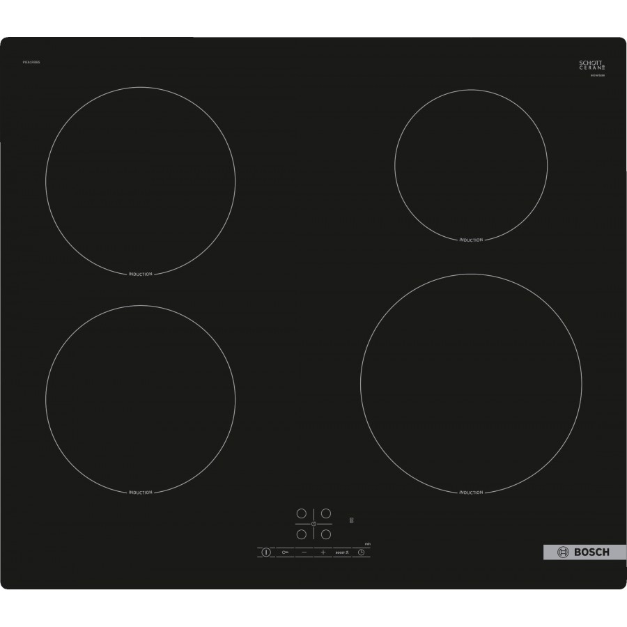 Deze fraai gebouwde Bosch PIE61RBB5E inductie kookplaat beschikt over 4 kookzones. De Bosch kookplaat heeft een breedte van 60 cm. Koken op inductie is de meest comfortabele en energie efficiënte manier van eten bereiden. Inductie kookplaten vragen een elektrische aansluiting. Deze kookplaat heeft een aansluitwaarde van 7400 Watt.