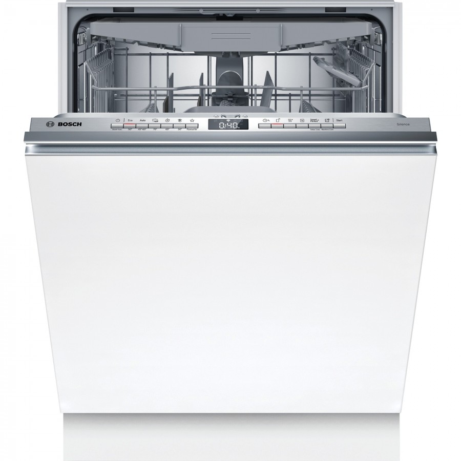 Deze Bosch SBH4HVX14E volledig geïntegreerde vaatwasser biedt een indrukwekkende capaciteit voor 14 couverts, uiterst stille werking dankzij de EcoSilence Drive en slimme bediening op afstand via de Home Connect app, allemaal verpakt in een modern design dat naadloos in uw keukenkastjes integreert voor een perfect strakke en stijlvolle uitstraling zonder ook maar iets aan reinigingskracht in te leveren.