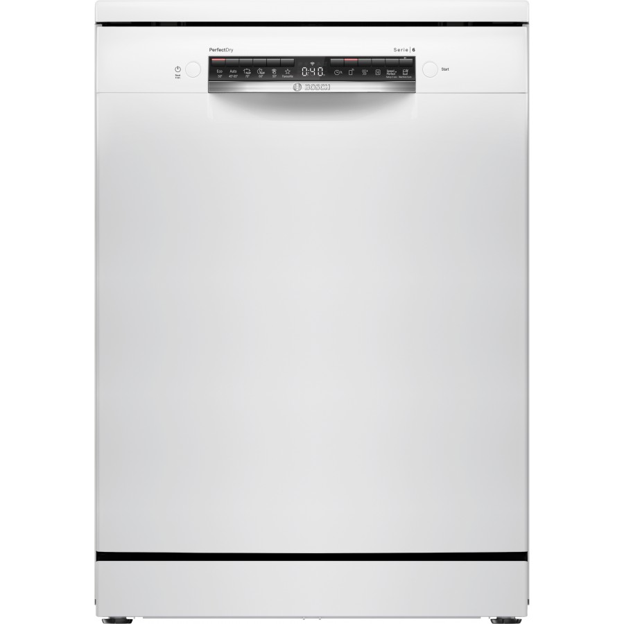 Deze fraaie Bosch SMS6ZCW10E vrijstaande afwasautomaat heeft een vulcapaciteit voor 14 couverts. Bij deze vrijstaande afwasmachine heeft u de keuze uit 6 programma's, zoals bijvoorbeeld Auto 45-65°C, Favoriet, Eco, Intensief, Kort, Nachtprogramma. Verder heeft de vrijstaande vaatwasser een geluidsniveau van 40 dB.