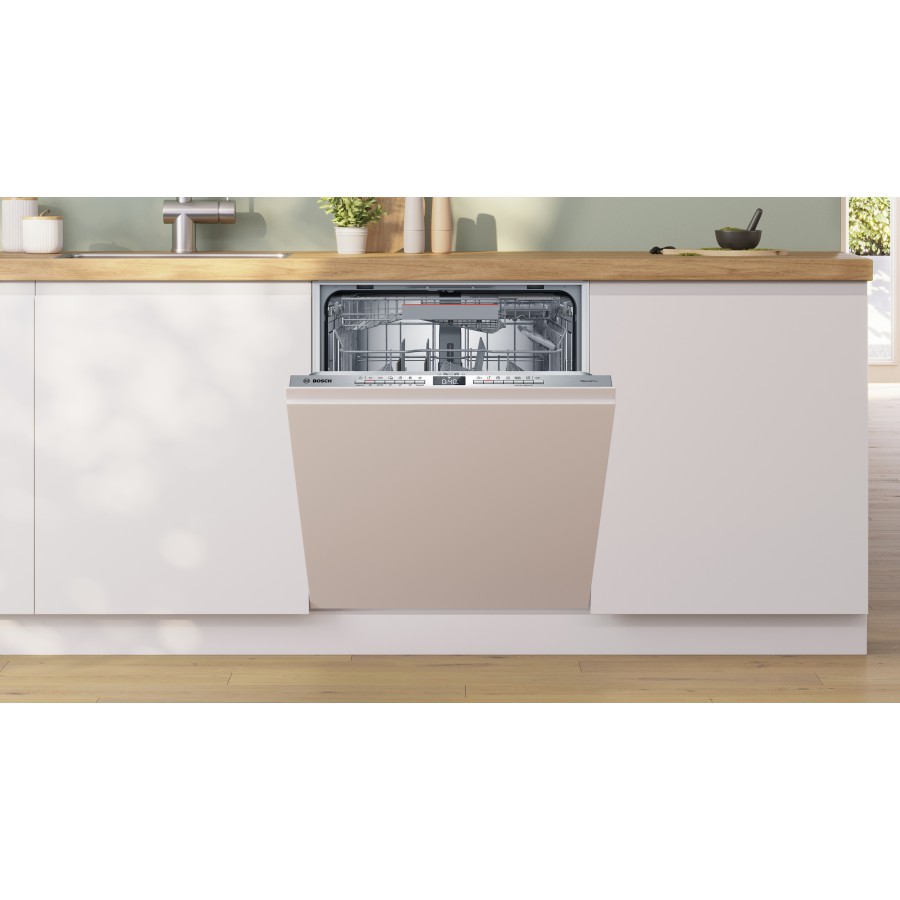 Deze Bosch afwasmachine is volledig geïntegreerd en heeft de bediening aan de binnenzijde boven op de deur. Na inbouw van deze vaatwasser kan uw eigen keukenpaneel weer op de vaatwasser worden gemonteerd. Dit is een normaal model vaatwasser geschikt voor een inbouwhoogte tot maximaal 87,5 cm.