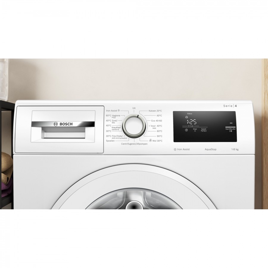 Met het SpeedPerfect programma kiest u voor een grondige reiniging in een aanzienlijk kortere tijdsduur. Deze technologie optimaliseert de bewegingen van de trommel en de temperatuur van het water, zodat u tot vijfenzestig procent sneller klaar bent zonder dat u hoeft in te leveren op de bekende Bosch kwaliteit en de perfecte schoonmaakresultaten.