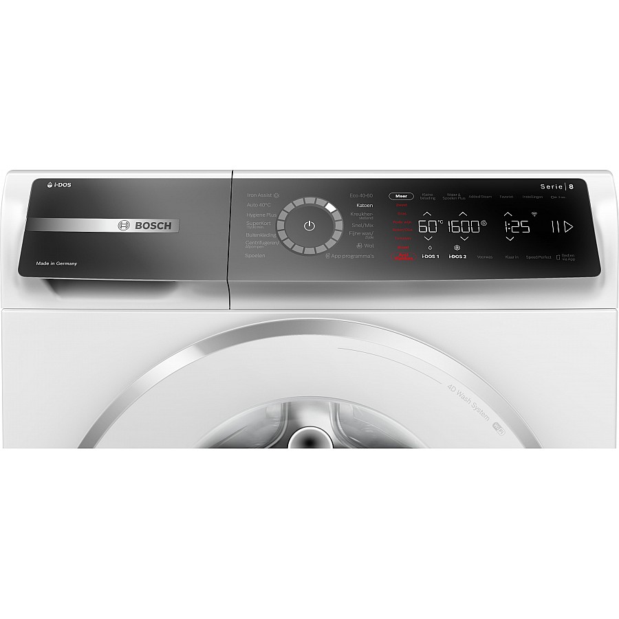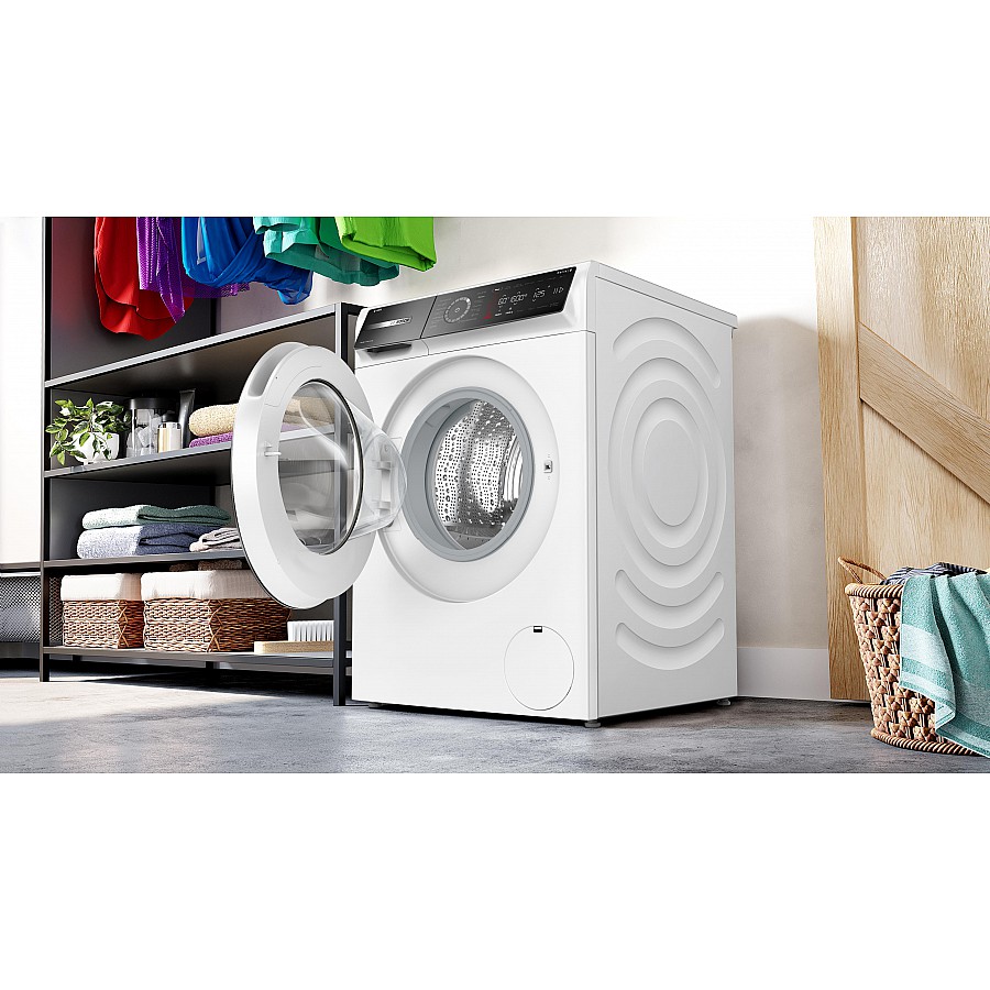 De zeer efficiënte wasmachine met i-DOS en wasmiddelscan via Home Connect, waarmee je bespaart op water en wasmiddel. Maximaliseer je energiebesparing met energieklasse A -30% en verklein je strijkstapel met Iron Assist.