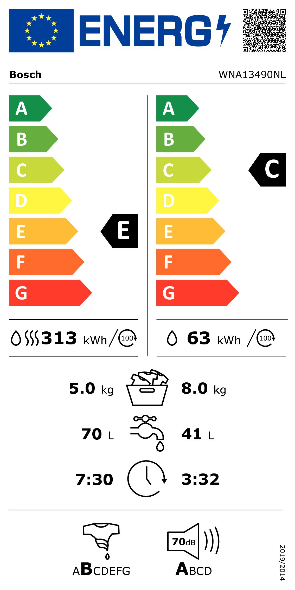 Waterverbruik per cyclus 70 liter