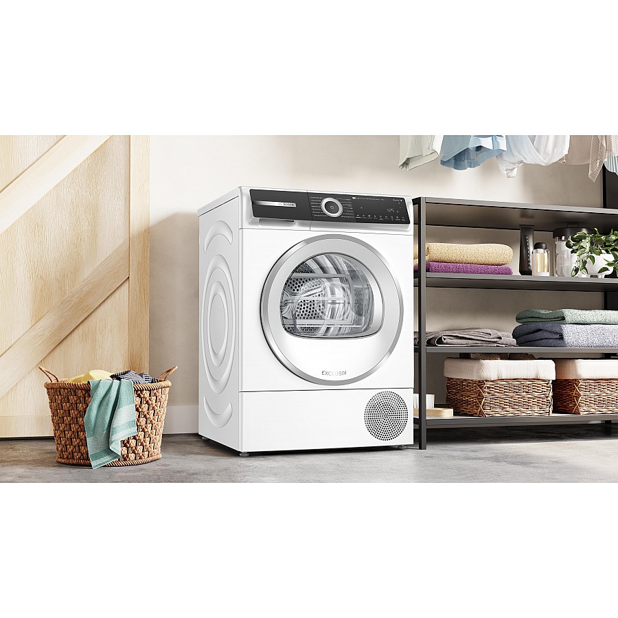 Een competente warmtepompdroger met Smart Dry via Home Connect. Bespaart energie met A+++ en de zelfreinigende condensor. Beschermt je kleding met Auto Dry en vermindert de stapel strijkgoed met Iron Assist.