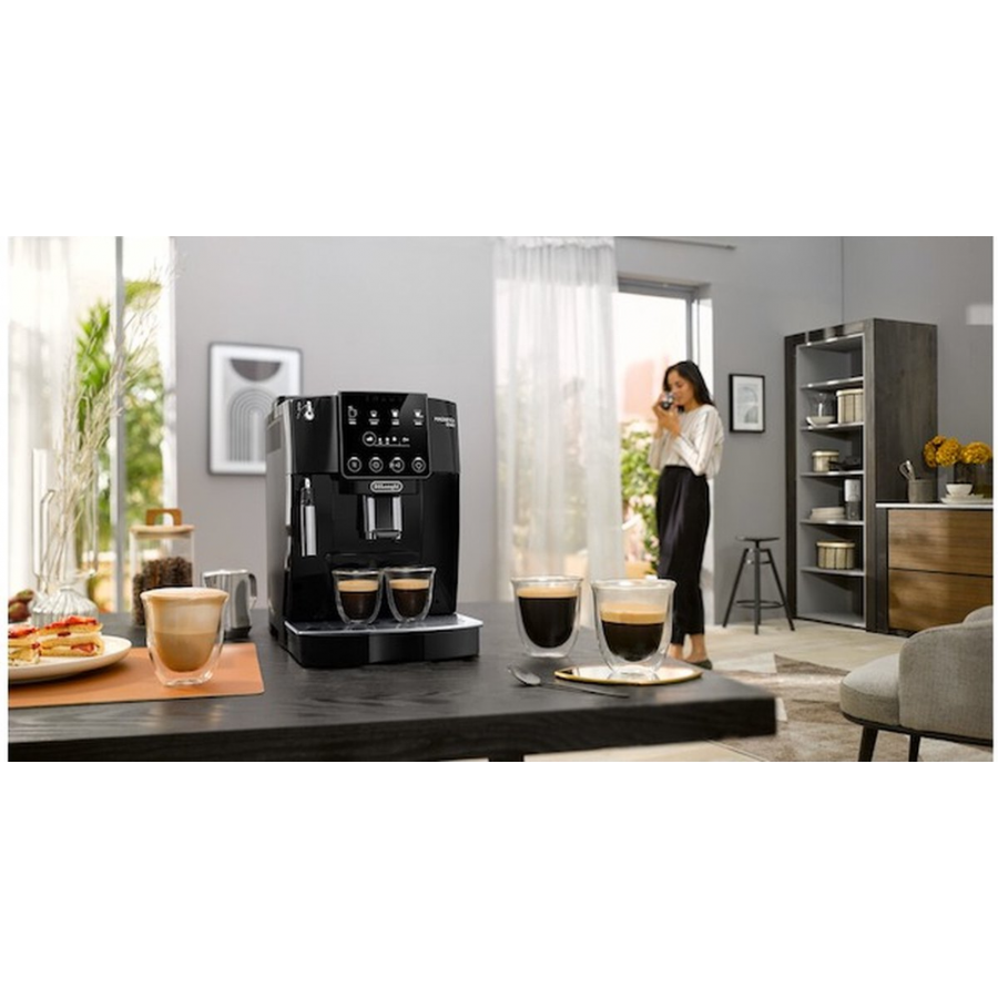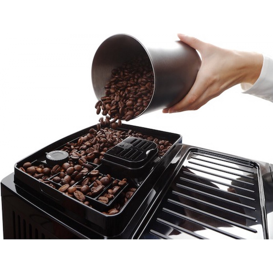 De De'Longhi ECAM220.21.B volautomaat beschikt over een werkdruk van 15 bar. Het waterreservoir heeft een inhoud van 1,8 liter en het bonenreservoir heeft een inhoud van 250 gram. De koffiemachine beschikt over een heetwaterfunctie, zodat je er ook thee mee kunt zetten. Drink je de koffie graag met extra veel melk? Met de volautomaat van De'Longhi zet je in een handomdraai een heerlijke latte macchiato!