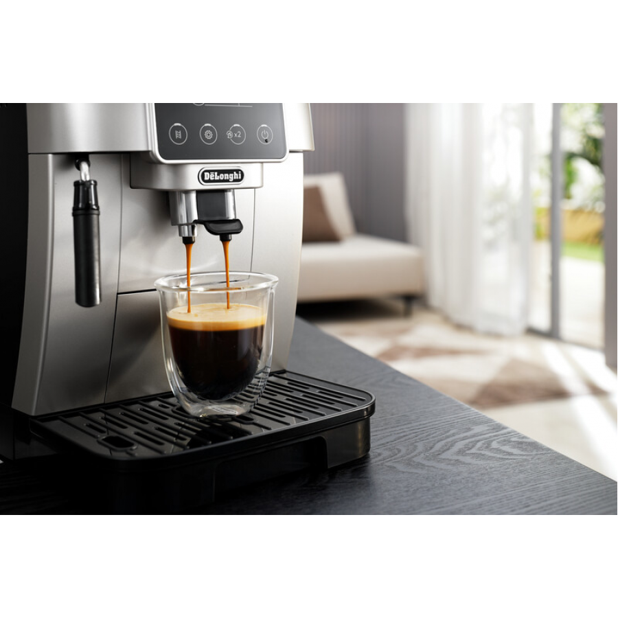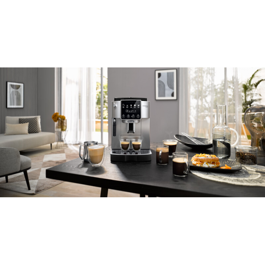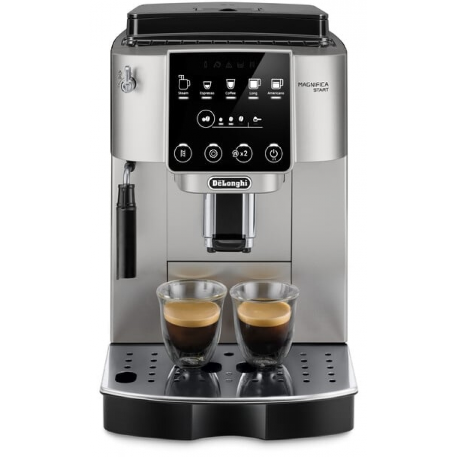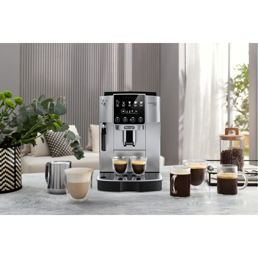 Betreed de wereld van koffie van boon tot kop met De'Longhi Magnifica Start, die alles biedt wat je nodig hebt om thuis aan de slag te gaan met je favoriete drankjes op basis van espresso. Hij beschikt over een gebruiksvriendelijke interface en een opvallende zilver-zwarte afwerking, en met slechts één druk op de knop geniet je van een drankje uit je persoonlijke selectie.