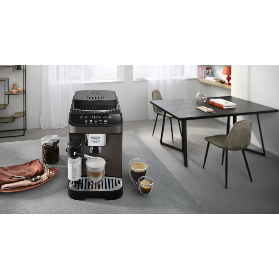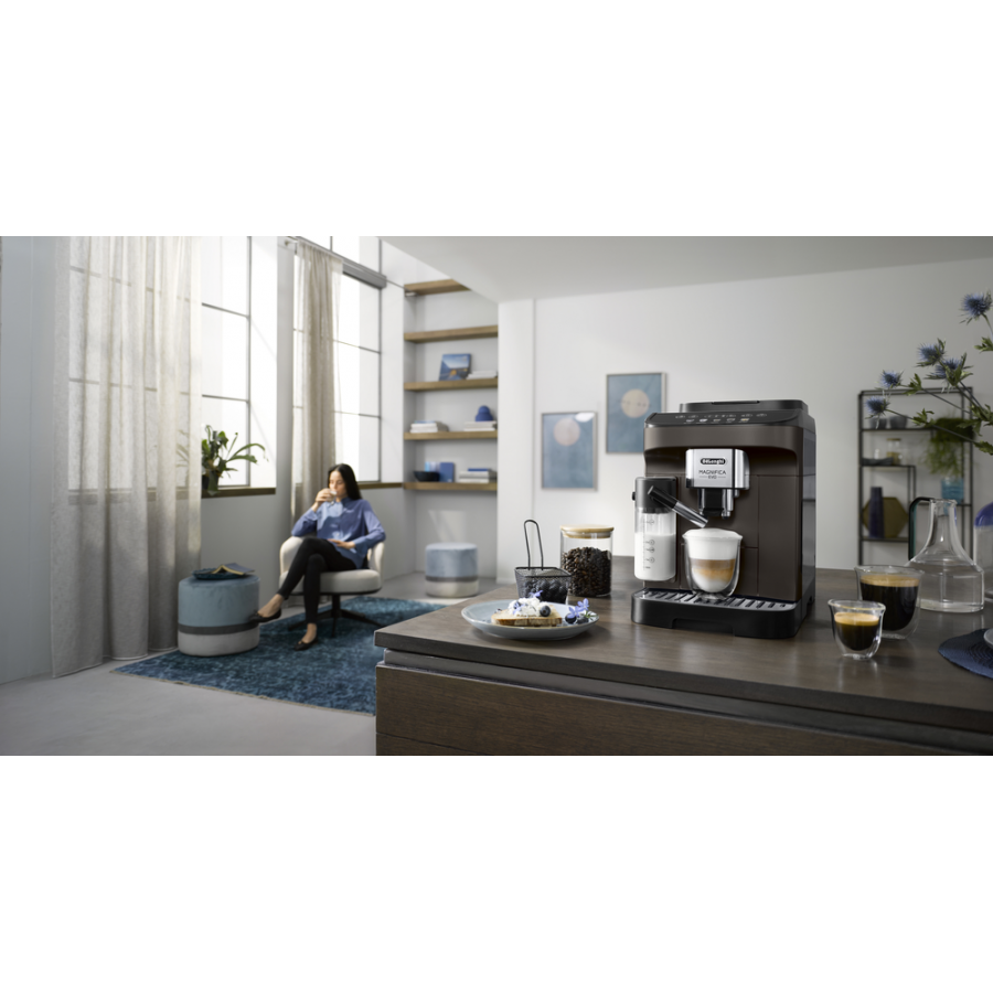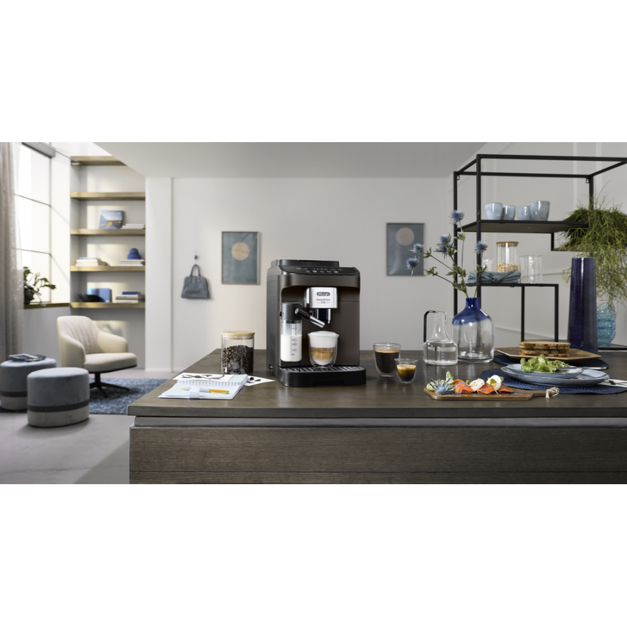 Ook het onderhoud is eenvoudig: de Magnifica voert veel reinigingstaken automatisch uit, zodat jij vooral bezig bent met genieten. Voeg daar het gebruiksvriendelijke display en de intuïtieve bediening aan toe, en je hebt een koffiemachine die net zo slim is als hij stijlvol oogt.