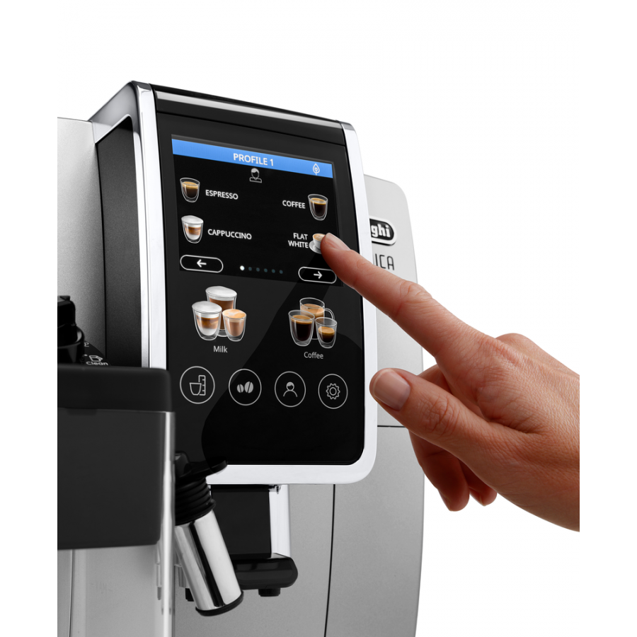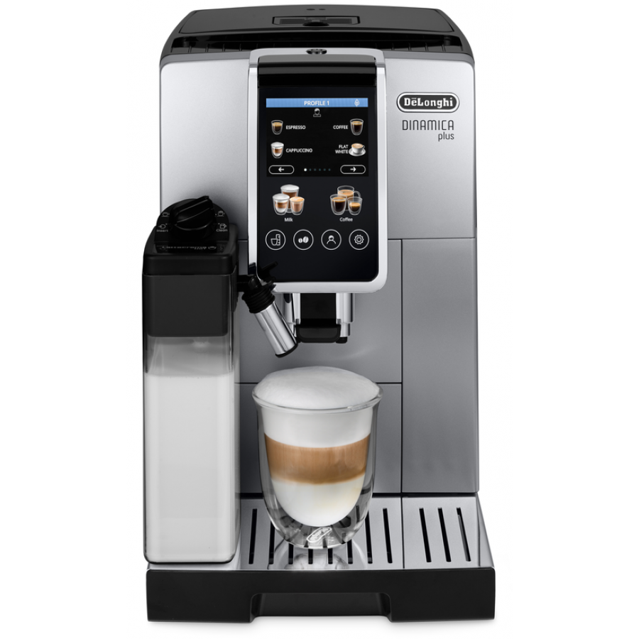 De DeLonghi ECAM380.85.SB combineert een stijlvolle zilver gelakte voorkant met gebruiksgemak, dankzij de one-touch automatische reiniging en een vaatwasmachinebestendige melkkan.