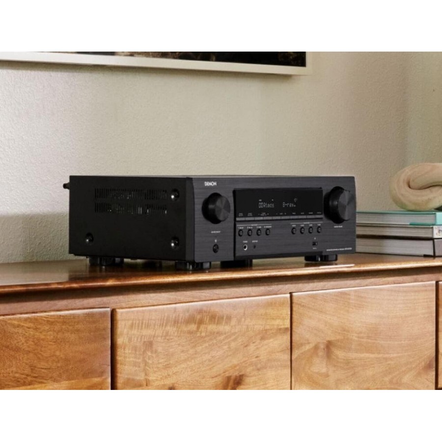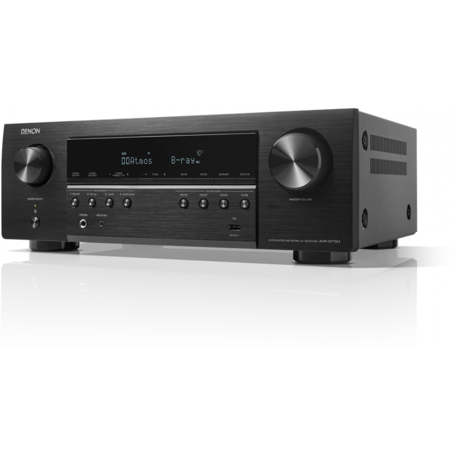 Deze Denon AVR-S770H AV Receiver - Zwart brengt jouw home cinema naar een hoger niveau met verbluffende 8K-video en meeslepende 3D-audio. Dankzij Dolby Atmos en DTS:X geniet je van een ultradiepe geluidservaring, perfect voor kleine tot middelgrote ruimtes. Met HEOS Built-in stream je eenvoudig muziek naar alle HEOS-compatibele luidsprekers in huis. De krachtige 7.2-kanaals versterker levert 140 watt per kanaal voor kristalhelder geluid, terwijl geavanceerde Audyssey-technologie zorgt voor optimale akoestiek in jouw ruimte. Draadloze connectiviteit via Wi-Fi, Bluetooth en AirPlay 2 maakt streamen vanaf elk apparaat moeiteloos.