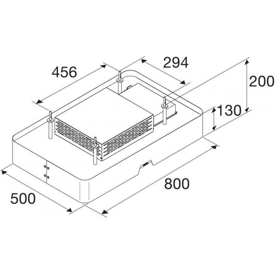 Dankzij de platte motor is deze afzuigkap slechts 20 cm hoog, waardoor hij discreet aan het plafond kan worden gemonteerd zonder inbouw, ideaal voor open keukens en kookeilanden.