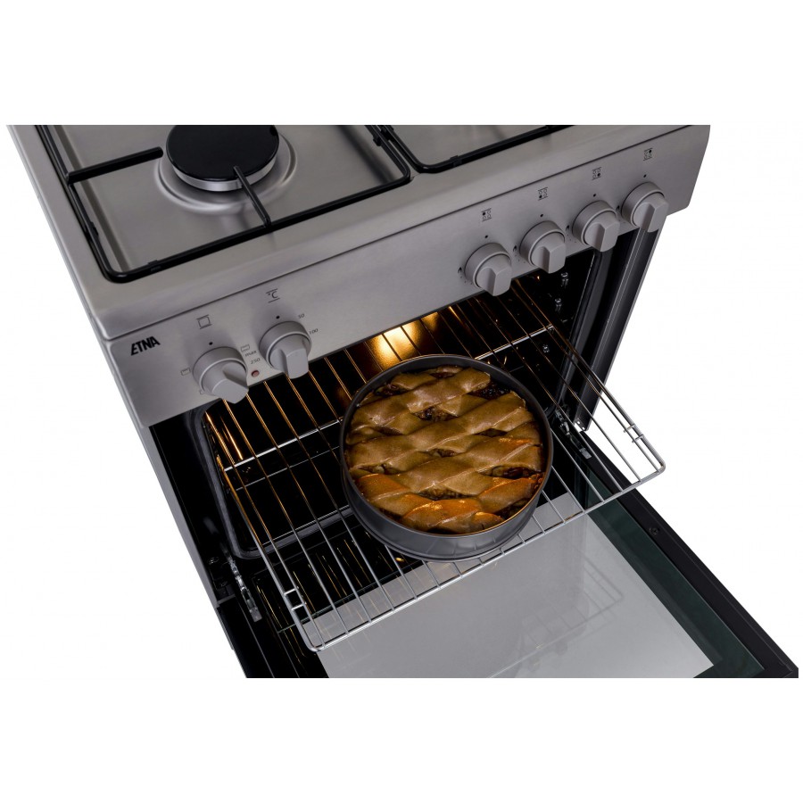 De elektrische oven van 72 liter biedt boven- en onderwarmte, een krachtige grill en heldere binnenverlichting. Of je nu pizza’s bakt, een ovenschotel maakt of een taart wilt garen — met dit fornuis heb je altijd de juiste instellingen bij de hand.