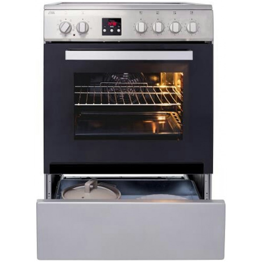 Begin vandaag nog met inductie koken. Dit inductiefornuis met oven heeft 4 zones die u op 10 standen kan instellen. De zones hebben restwarmte indicatie zodat u weet welke plaat nog heet is. Ook zit er een boost in. Deze boost zorgt u snel de gewenste warmte heeft. Ook heeft het fornuis een electro-oven. Deze multifunctionele oven heeft onder-en bovenwarmte, turbo hete lucht, ventilator + onderwarmte, grill, grill + bovenwarmte, grill + bovenwarmte + ventilator en ontdooifunctie en een maximum temperatuur van 275°C. De inhoud van de oven is 58 liter en de klapdeur is van dubbelglas. Er zit verlichting in de oven en hij heeft een digitale display met timer. De oven komt standaard met: 1 ovenrooster en 1 geëmailleerde bakplaat. Ook zit er een opberglade in.Afmetingen (hxbxd): 850 x 600 x 600 mm.