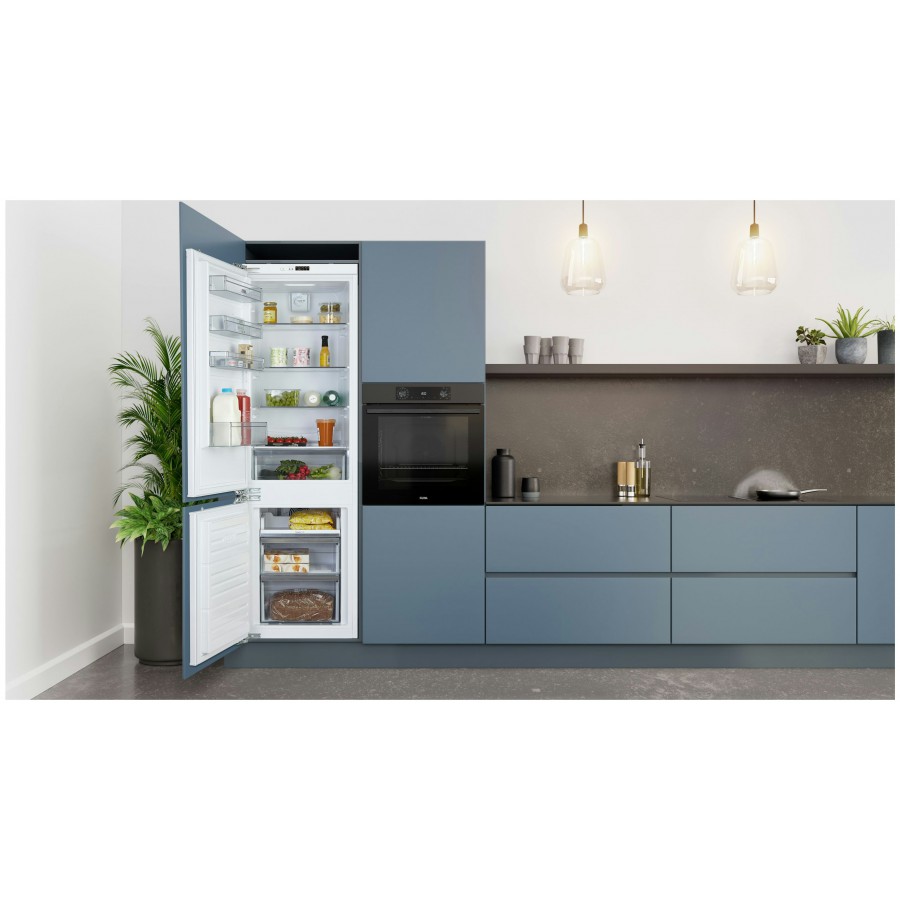 De Etna KCD6178NF inbouwkoel-vriescombinatie biedt met een netto inhoud van 243 liter volop ruimte voor al jouw etenswaren. Het koelgedeelte heeft een capaciteit van 180 liter, terwijl het vriesgedeelte 63 liter omvat. Deze koelkast is geschikt voor een nis van 178 cm hoog, 56 cm breed en 55 cm diep. Dankzij het energielabel E is hij relatief zuinig, en dankzij No Frost technologie hoef je het vriesgedeelte nooit handmatig te ontdooien.