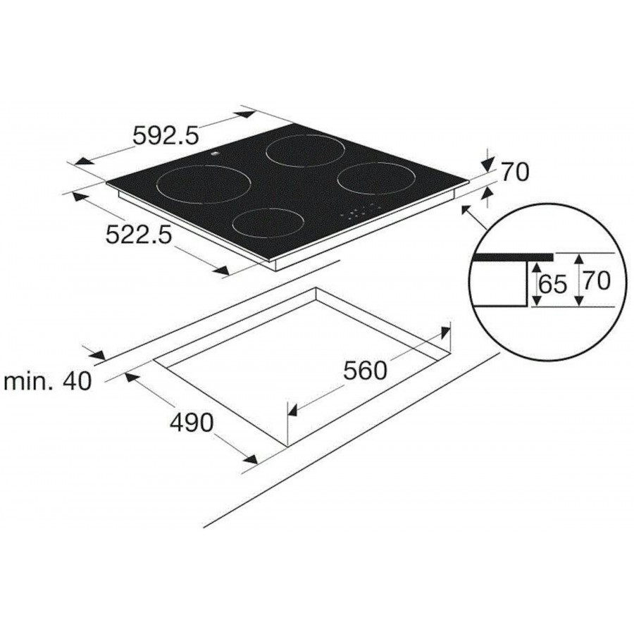 De kookplaat moet worden aangesloten op 2 fasen. Gemakkelijk bij deze kookplaat is dat die geleverd wordt met het snoer eraan. Aan deze 5-aderige kabel kan de Perilex stekker gemaakt worden (1400mm). Het is een instapmodel, maar wel één met gemak voor jou! Per zone kun je de ‘boostfunctie’ inschakelen voor extra snelheid. Met de ingebouwde timer per zone kook je de perfecte eitjes en laat je nooit meer wat aanbranden. Last but not least: met de extra krachtige 21 cm zone met 2600W breng je extra snel een grote pan water aan de kook of heb je ruimte voor je grote hapjespan. De kookplaat heeft de volgende afmetingen: 59,2 x 52,2 mm en de volgende inbouwmaten: 56 x 560 x 490 mm.