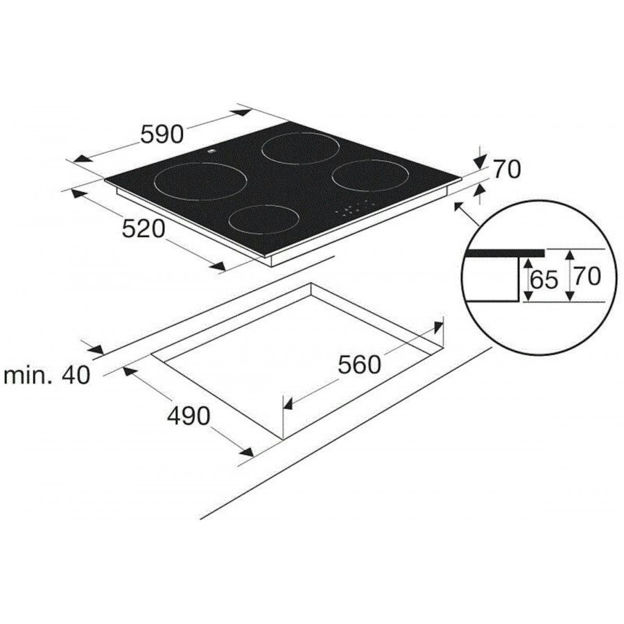 De kookplaat moet worden aangesloten op 2 fasen. Gemakkelijk bij deze kookplaat is dat die geleverd wordt met het snoer eraan. Aan deze 5-aderige kabel kan de Perilex stekker gemaakt worden (1400mm). Het is een instapmodel, maar wel één met gemak voor jou! Per zone kun je de ‘boostfunctie’ inschakelen voor extra snelheid. Met de ingebouwde timer per zone kook je de perfecte eitjes en laat je nooit meer wat aanbranden. Last but not least: met de extra krachtige 21 cm zone met 2600W breng je extra snel een grote pan water aan de kook of heb je ruimte voor je grote hapjespan. De kookplaat heeft de volgende afmetingen: 59 x 52 cm en de volgende inbouwmaten: 56 x 560 x 490 mm.