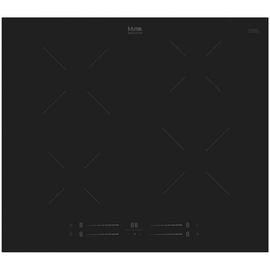 De Etna KI560ZT is een inductiekookplaat met sliderbediening. De kookplaat beschikt over 4 kookzones en een centrale aan/uit bediening.