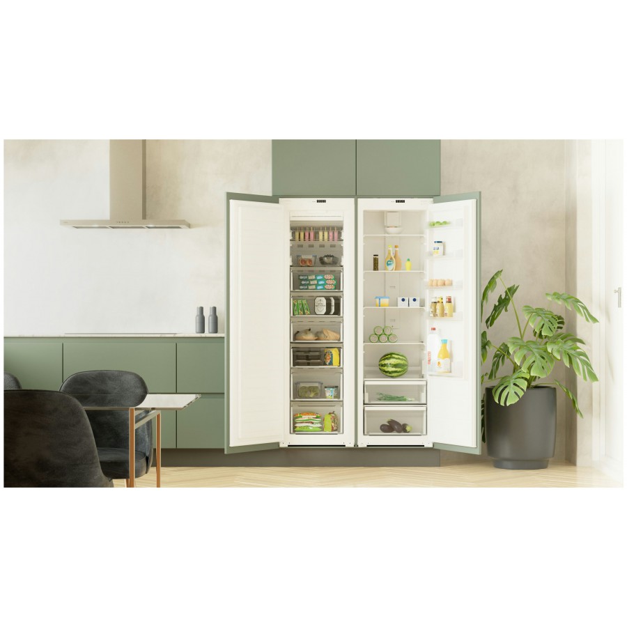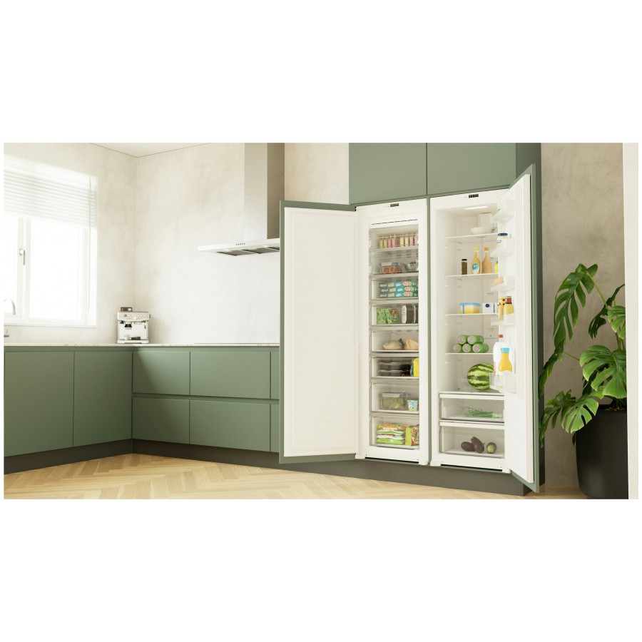 Met het sleepdeursysteem en aanpasbare deurrichting past deze koelkast naadloos in elke keuken. De elektronische thermostaat zorgt ervoor dat je altijd de perfecte temperatuur hebt voor jouw etenswaren.